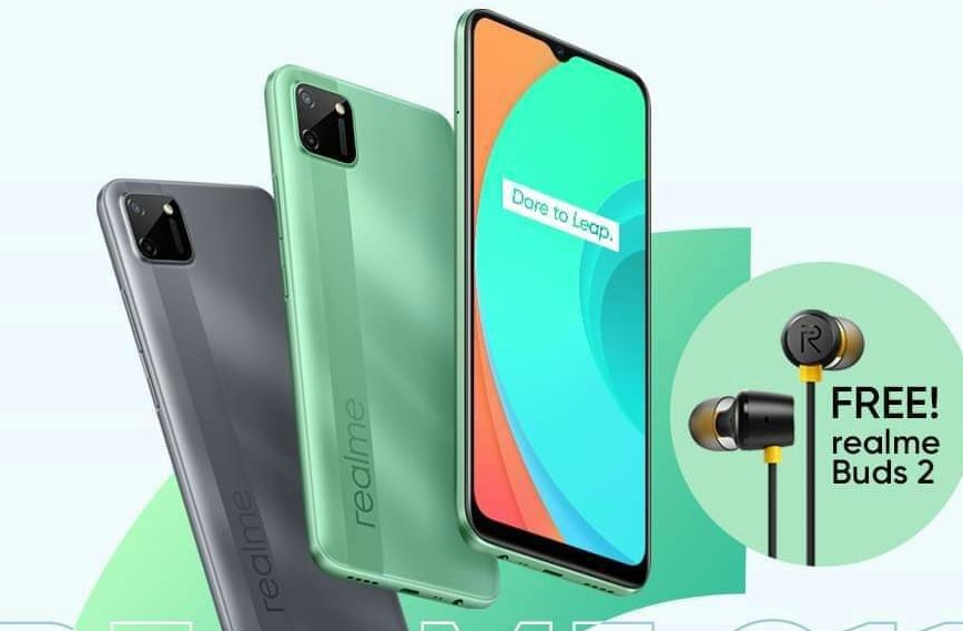 Realme c11 adalah suksesor dari realme c2. Realme c11 merupakan handphone hp dengan kapasitas 5000mah dan layar 6.5 yang dilengkapi dengan kamera belakang 13 + 2mp dengan tingkat densitas piksel sebesar 270ppi dan tampilan resolusi sebesar 720 x 1560pixels. Dua ponsel ini juga menjalankan realme ui 1.0 berbasis android 10. Tampilan yang menarik dari hp c11 ini adalah pilihan warna yang membalut bodi: